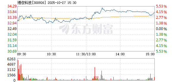 盘中涨幅达5%,截至13点28分,报34.14元,成交3.04亿元,换手率3.21%。