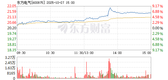 以下是东方电气在北京时间10月27日13:45分盘口异动快照:10月27日,