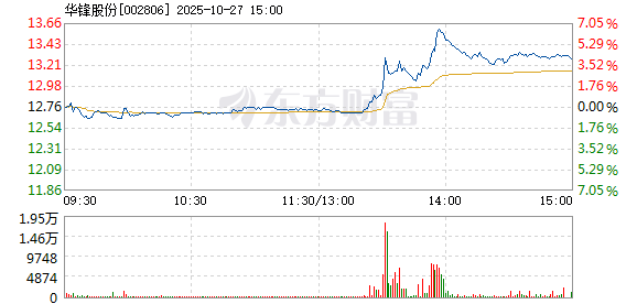 华锋股份10月27日盘中涨幅达5%