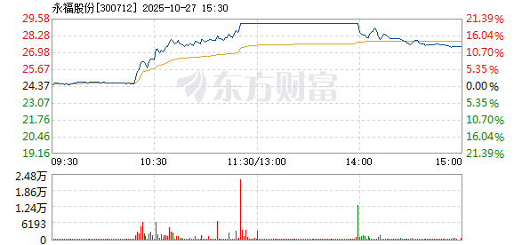 以下是永福股份在北京时间10月27日14:13分盘口异动快照:10月27日,