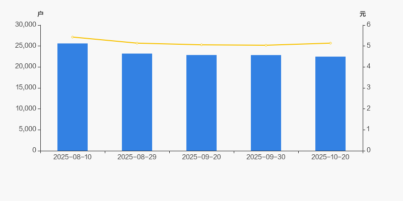 自2025年8月10日以来,公司股东户数连续4期下降,截至目前减幅为12.30%。2025年8月10日至2025年10月20日区间股价下降5.34%。