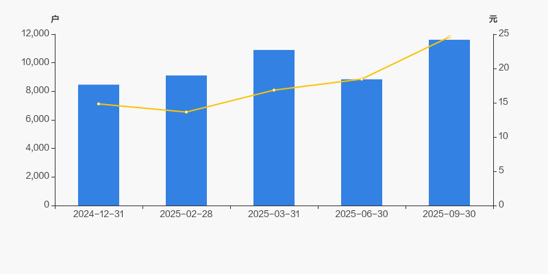 2024年12月31日至今,公司股东户数显著增长,区间涨幅为37.14%。2024年12月31日至2025年9月30日区间股价上涨66.00%。