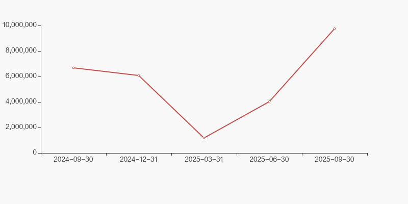 截至2025年9月30日,公司最新总股本为11.81亿股,其中流通股本为11.64亿股。户均持有流通股数量由上期的2.86万股上升至3.48万股,户均流通市值12.68万元。