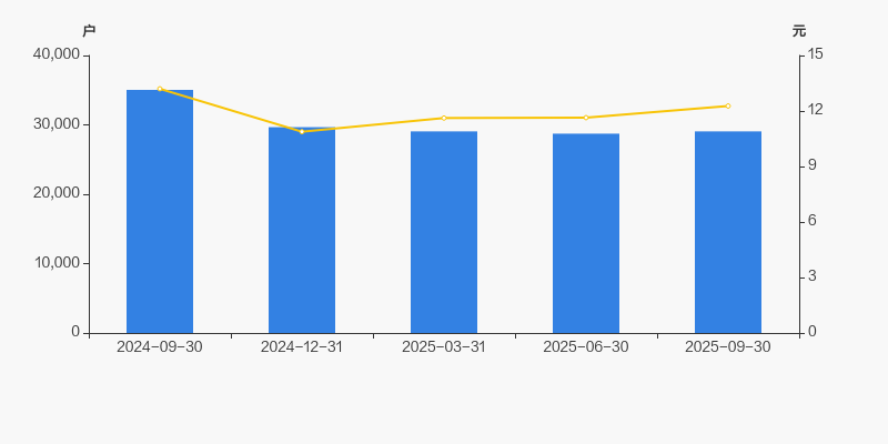 截至2025年9月30日,公司最新总股本为3.31亿股,其中流通股本为2.88亿股。户均持有流通股数量由上期的1万股下降至9896股,户均流通市值12.14万元。