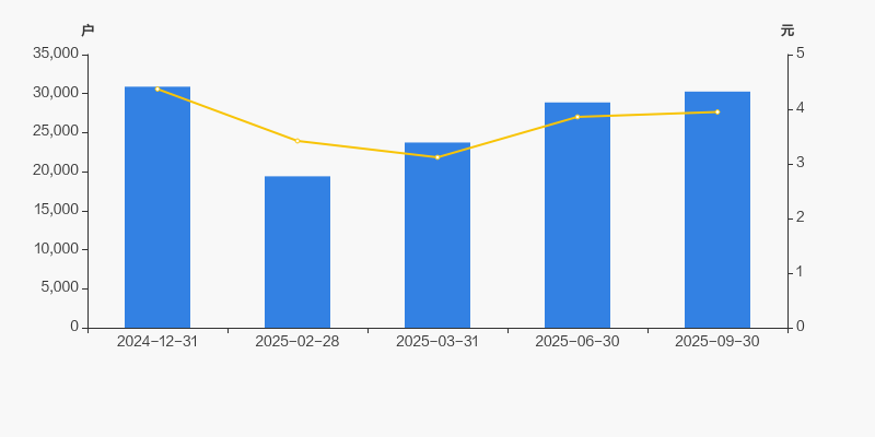 自2025年2月28日以来,公司股东户数连续3期上涨,截至目前增幅为55.95%。2025年2月28日至2025年9月30日区间股价上涨15.50%。