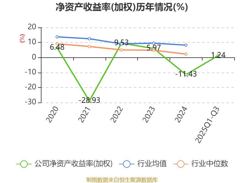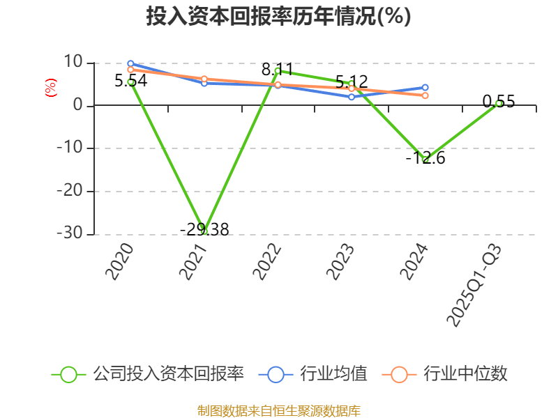盈利能力方面, 2025年前三季度公司加权平均净资产收益率为1.24%,同比上升4.72个百分点。公司2025年前三季度投入资本回报率为0.55%,较上年同期上升3.35个百分点。