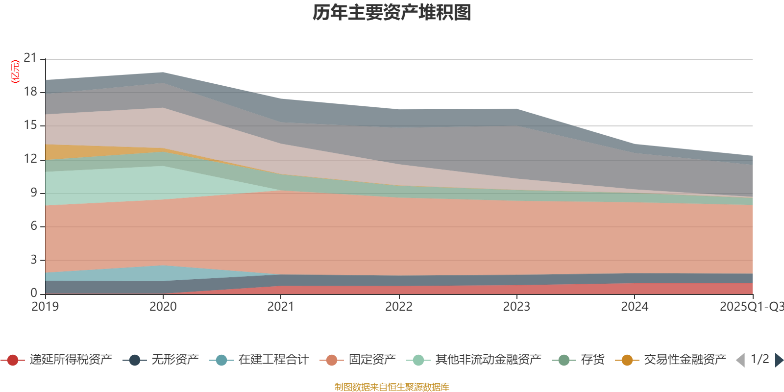 资产重大变化方面,截至2025年三季度末,公司固定资产较上年末减少3.31%,占公司总资产比重上升2.33个百分点;应收票据及应收账款较上年末减少68.97%,占公司总资产比重下降1.57个百分点;货币资金较上年末减少12.4%,占公司总资产比重下降1.2个百分点;存货较上年末减少24.07%,占公司总资产比重下降1.09个百分点。