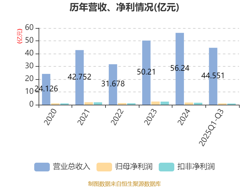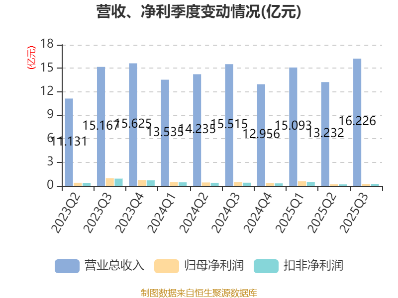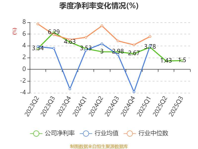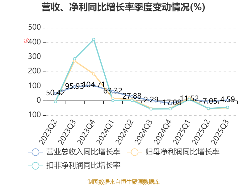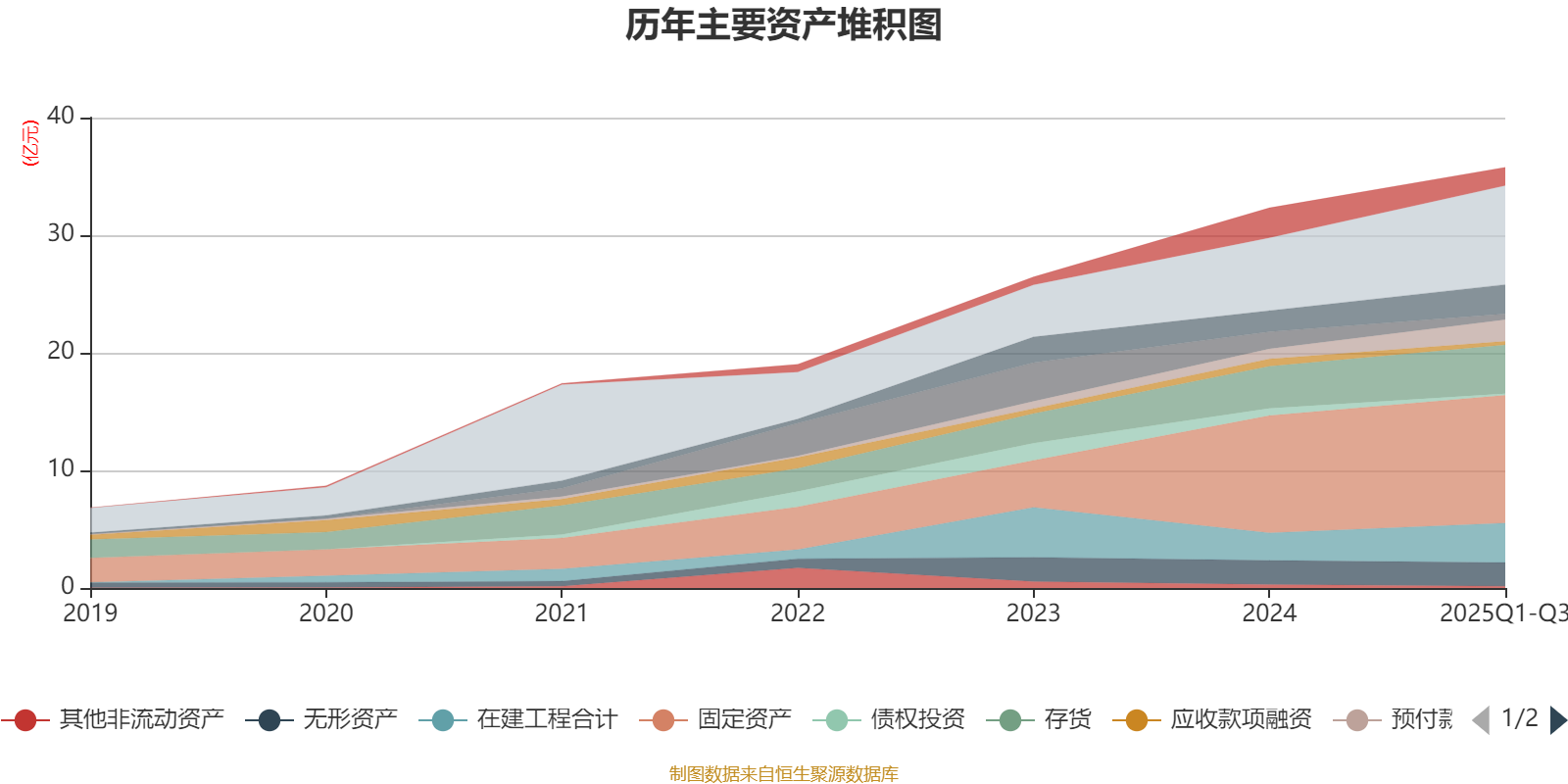 资产重大变化方面,截至2025年三季度末,公司货币资金较上年末增加36.2%,占公司总资产比重上升4.41个百分点;交易性金融资产合计较上年末减少65.67%,占公司总资产比重下降3.12个百分点;一年内到期的非流动资产较上年末减少64.45%,占公司总资产比重下降2.51个百分点;预付款项较上年末增加114.23%,占公司总资产比重上升2.48个百分点。