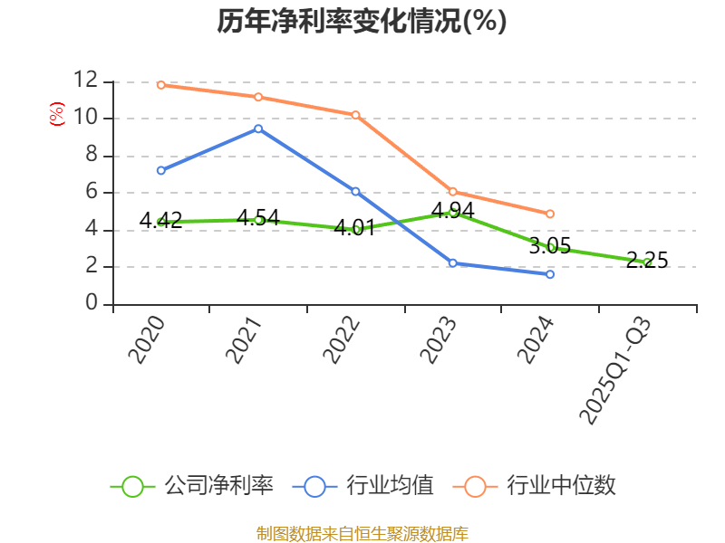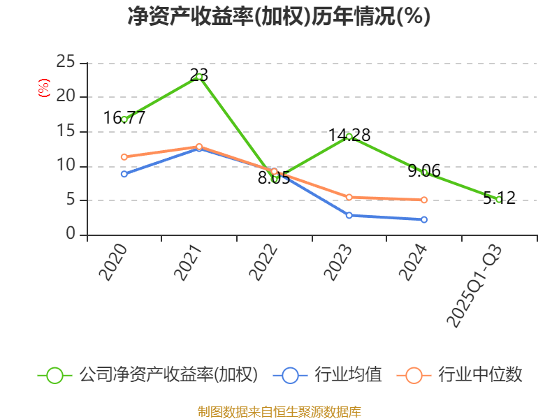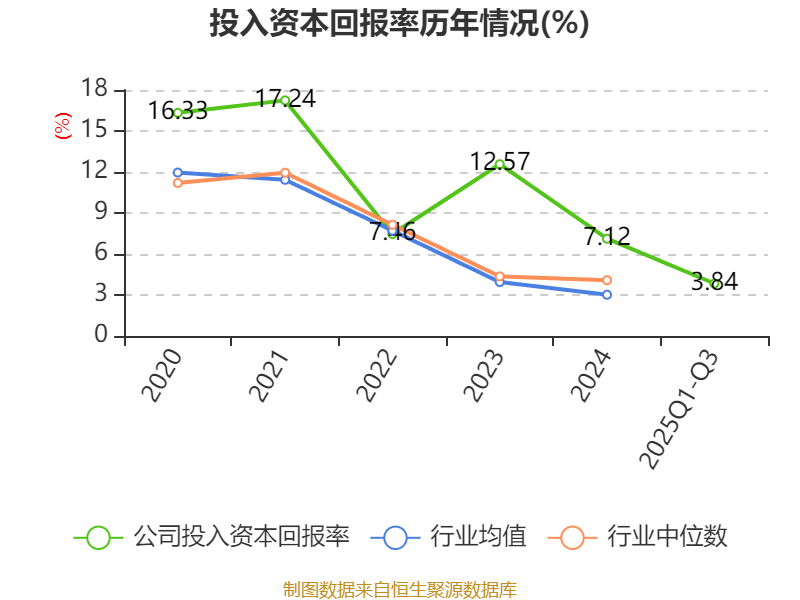 盈利能力方面, 2025年前三季度公司加权平均净资产收益率为5.12%,同比下降2.14个百分点。公司2025年前三季度投入资本回报率为3.84%,较上年同期下降1.82个百分点。