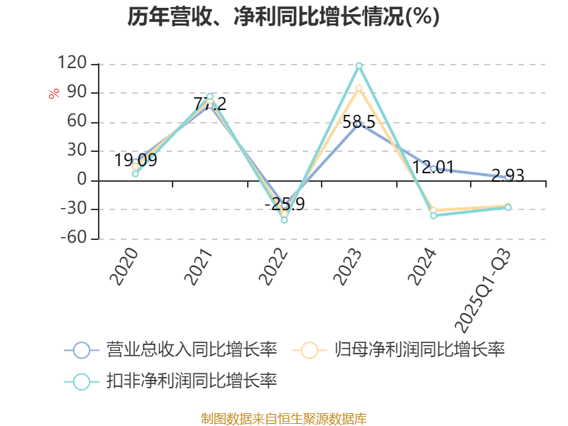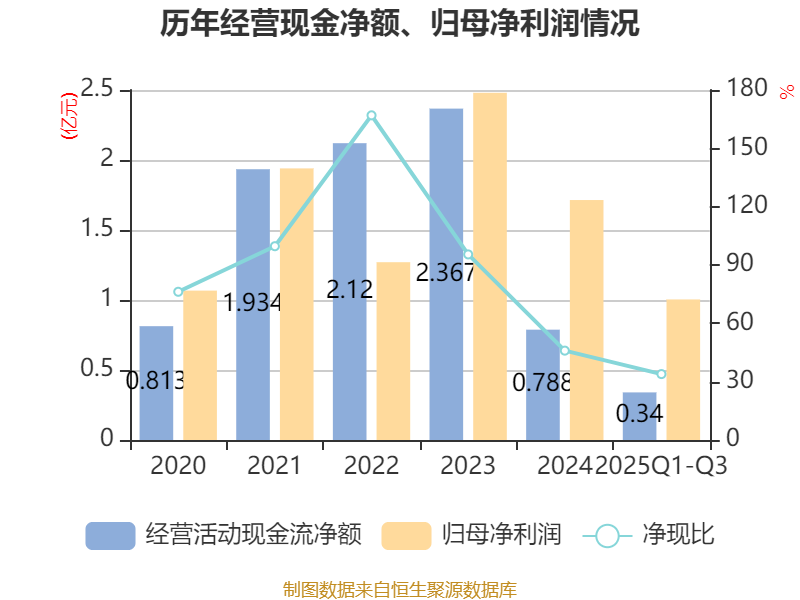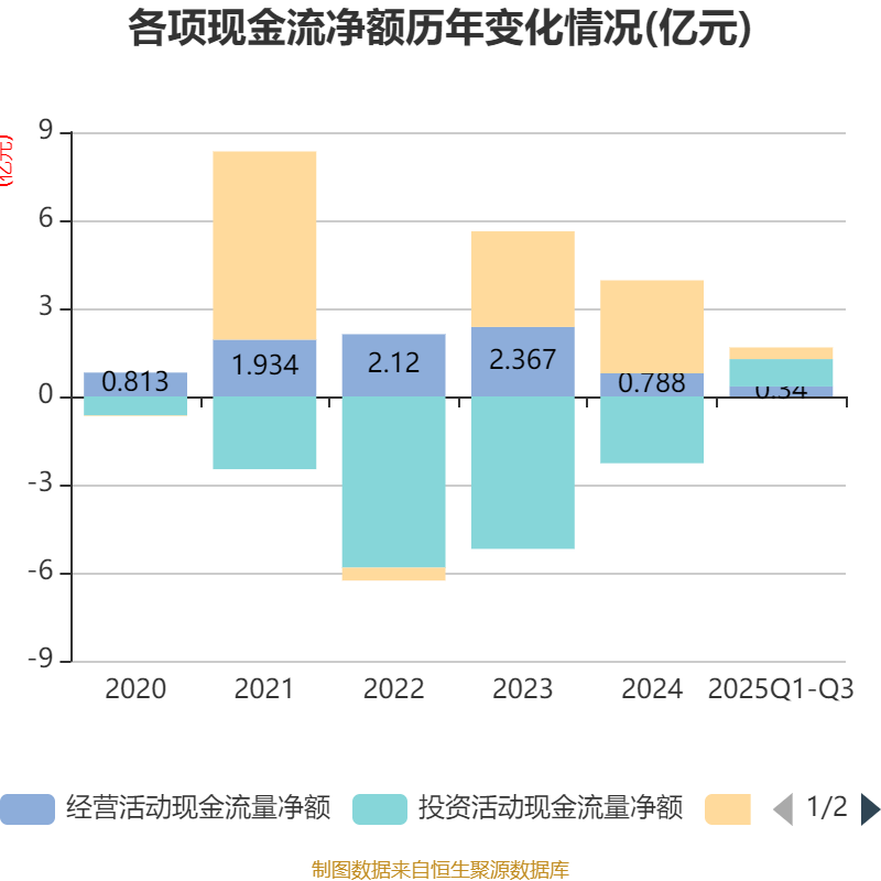 2025年前三季度,公司经营活动现金流净额为3402.83万元,同比下降46.52%;筹资活动现金流净额3968.65万元,同比减少3.15亿元;投资活动现金流净额9318.18万元,上年同期为-5.01亿元。