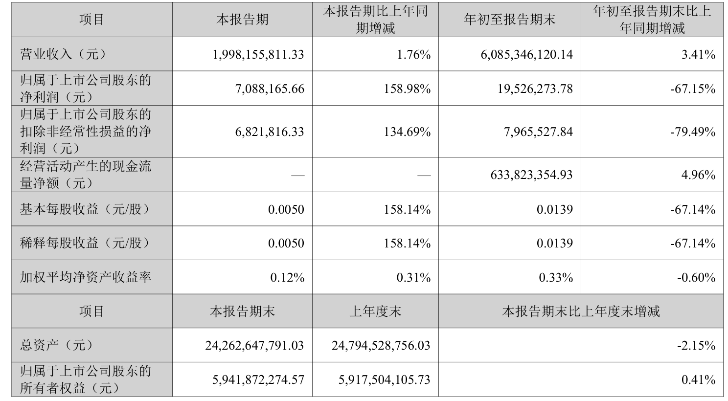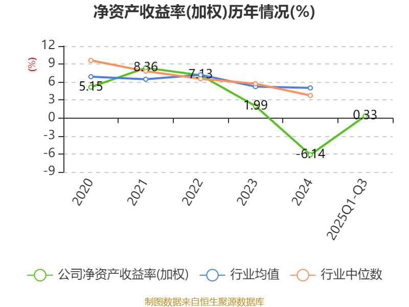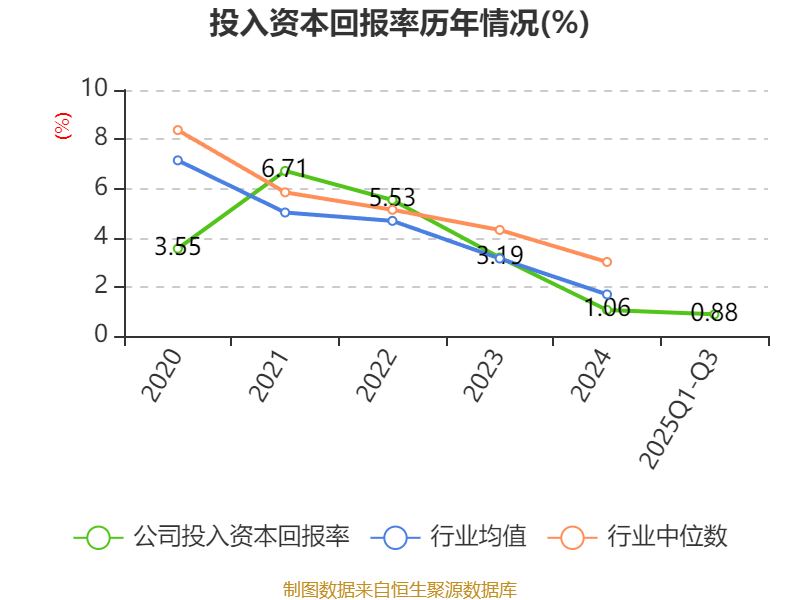 盈利能力方面, 2025年前三季度公司加权平均净资产收益率为0.33%,同比下降0.6个百分点。公司2025年前三季度投入资本回报率为0.88%,较上年同期下降0.49个百分点。