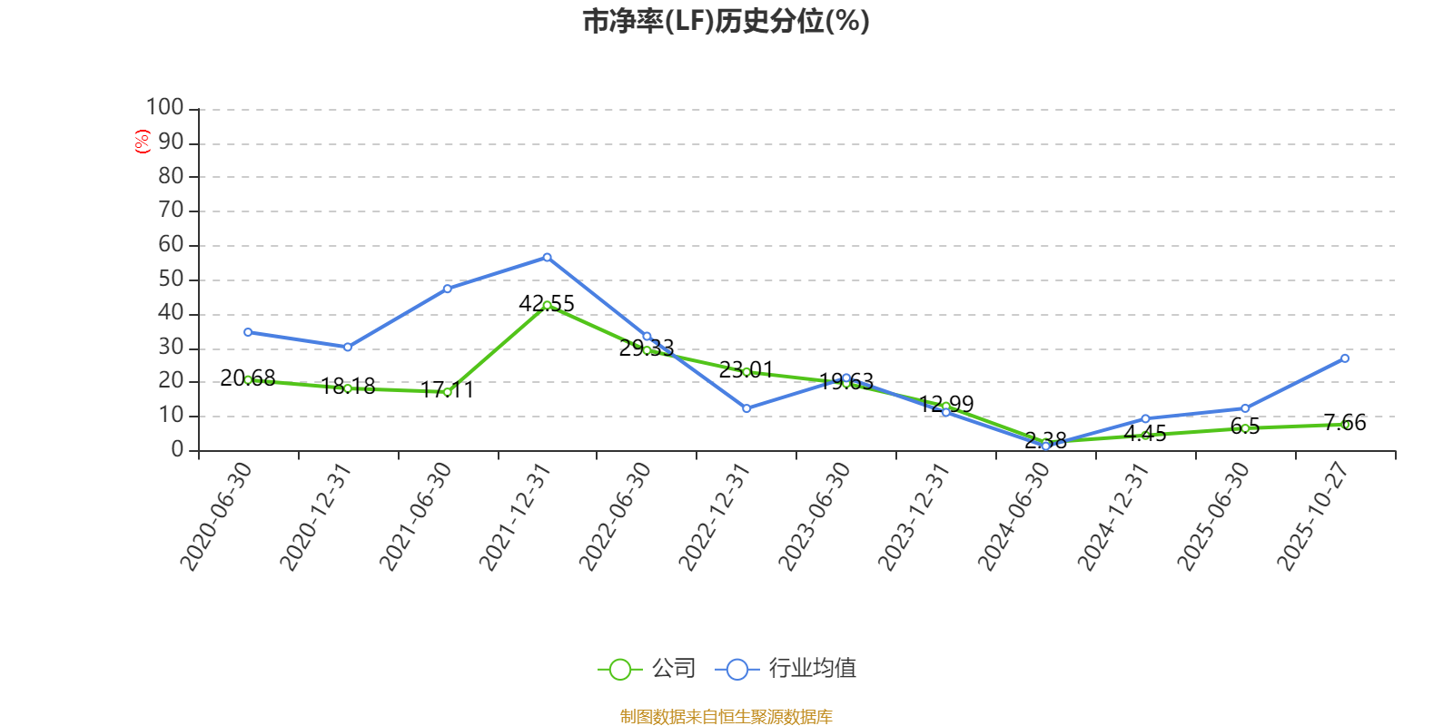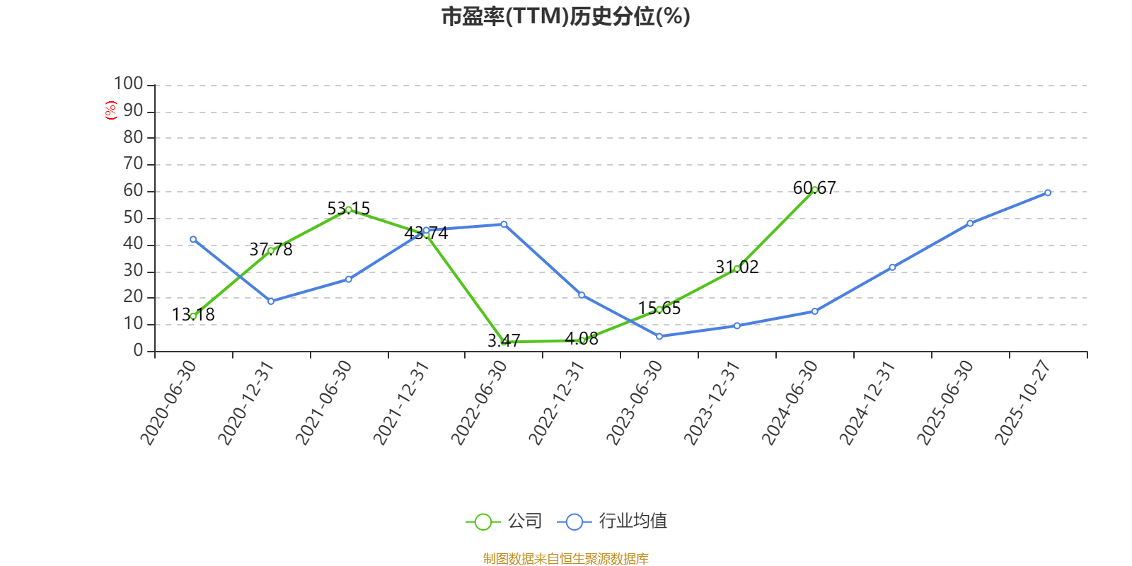 市盈率、市净率为负时,不显示当期分位数,会导致折线图中断。