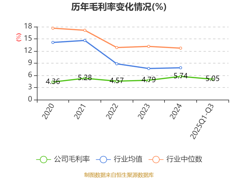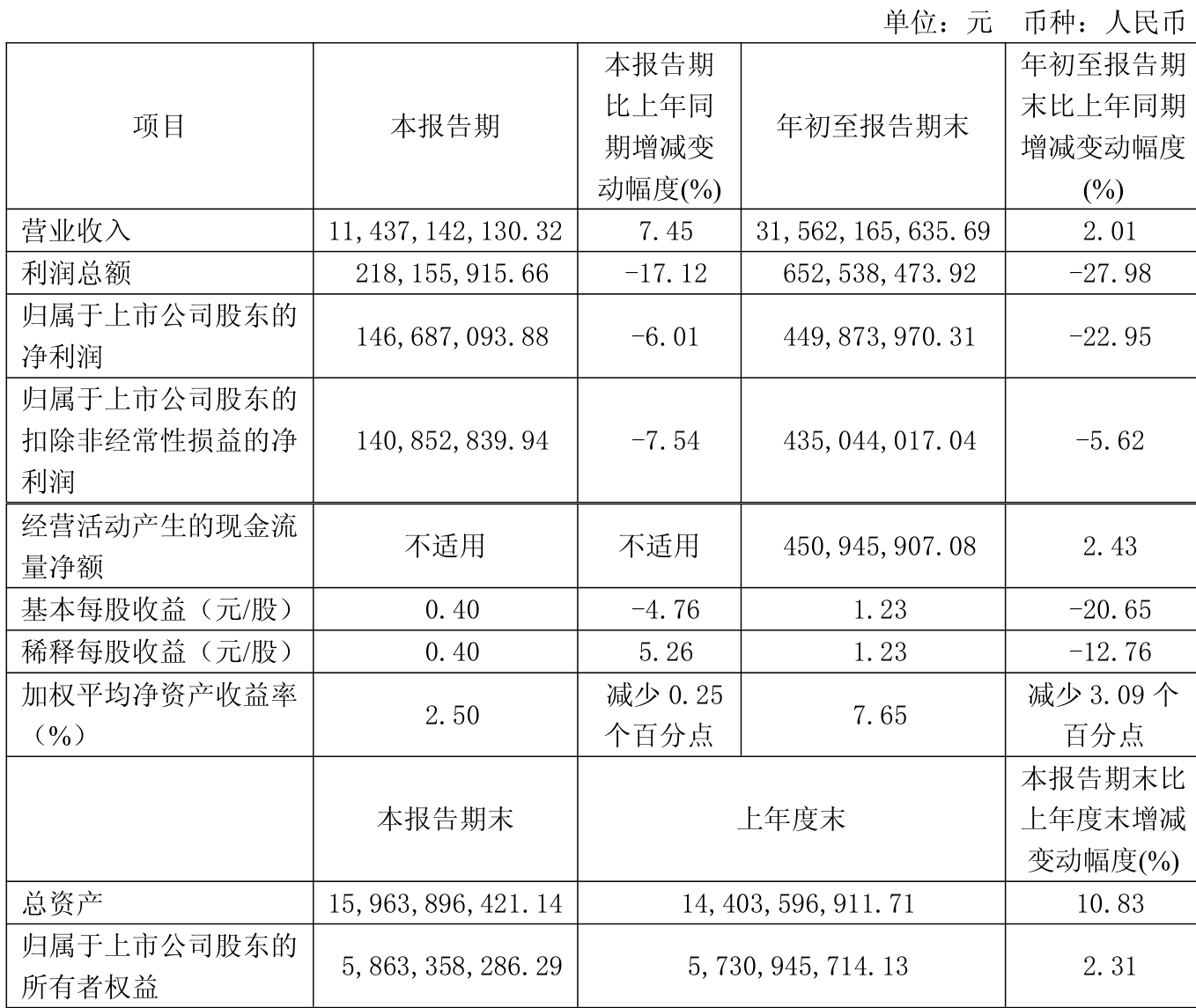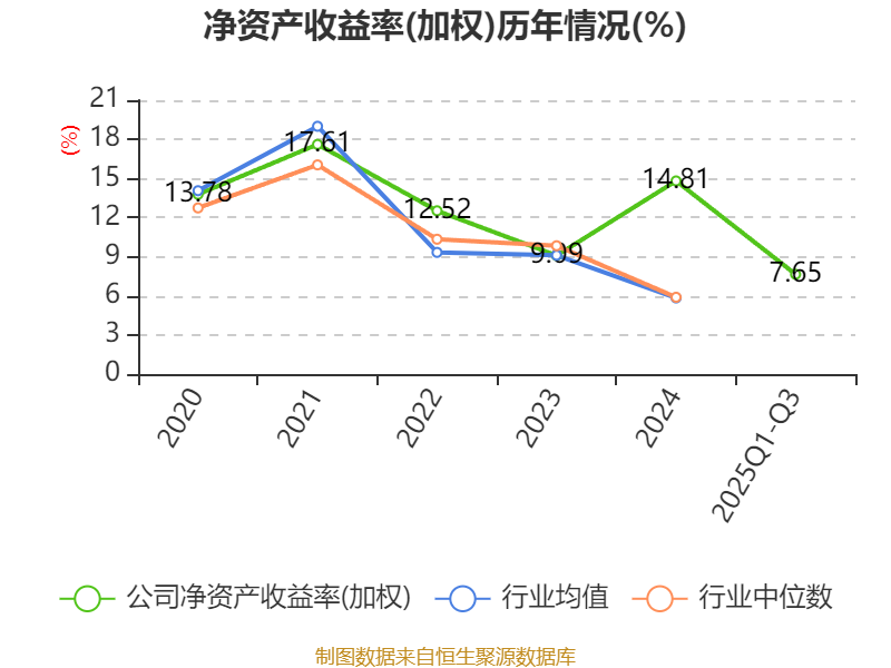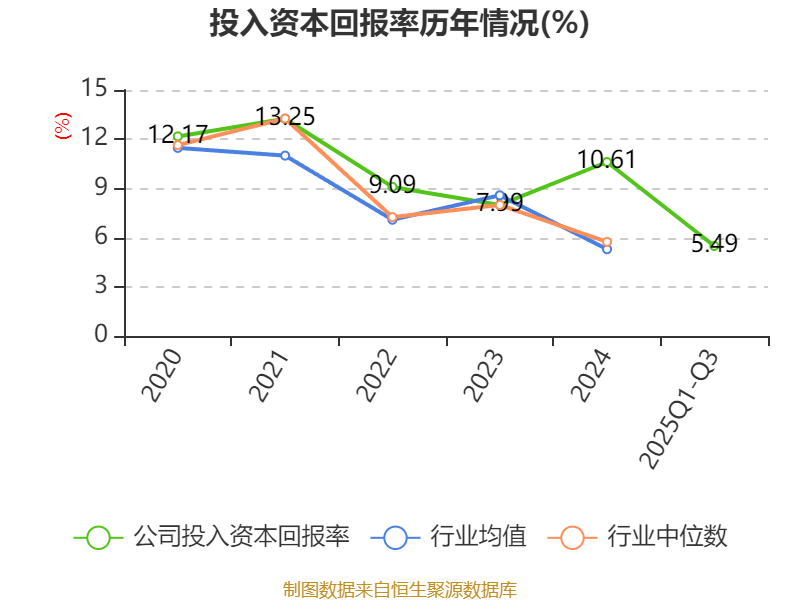 盈利能力方面, 2025年前三季度公司加权平均净资产收益率为7.65%,同比下降3.09个百分点。公司2025年前三季度投入资本回报率为5.49%,较上年同期下降2.32个百分点。
