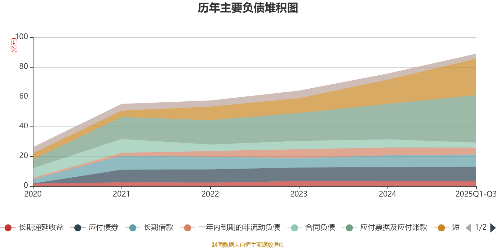 负债重大变化方面,截至2025年三季度末,公司短期借款较上年末增加50.61%,占公司总资产比重上升4.05个百分点;应付票据及应付账款较上年末增加33.87%,占公司总资产比重上升3.44个百分点;合同负债较上年末减少38.68%,占公司总资产比重下降1.71个百分点;一年内到期的非流动负债较上年末减少13.25%,占公司总资产比重下降0.8个百分点。