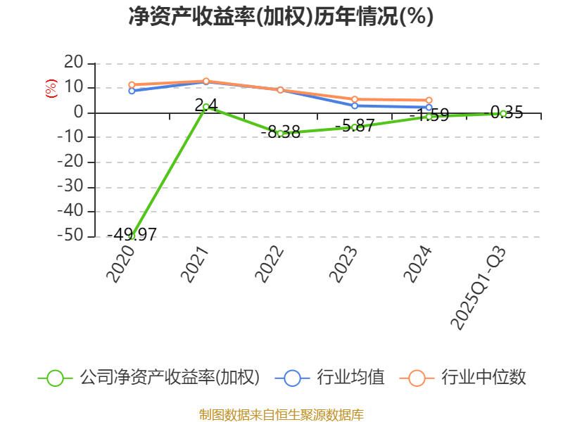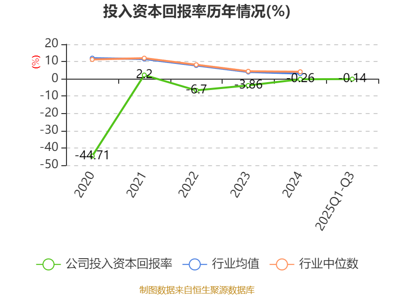 盈利能力方面, 2025年前三季度公司加权平均净资产收益率为-0.35%,同比下降2.44个百分点。公司2025年前三季度投入资本回报率为-0.14%,较上年同期下降2.09个百分点。