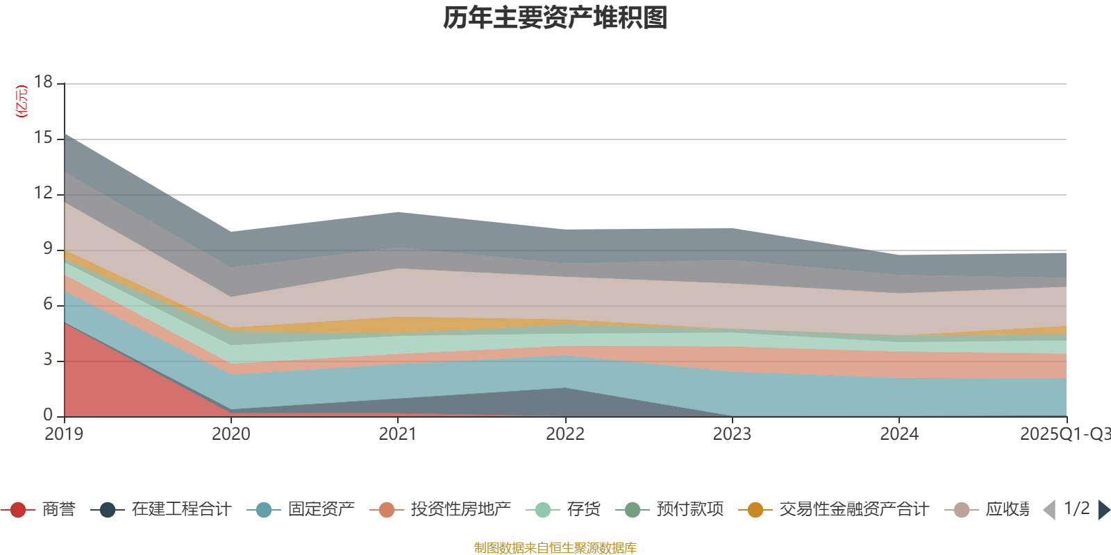 资产重大变化方面,截至2025年三季度末,公司货币资金较上年末减少50.75%,占公司总资产比重下降5.82个百分点;交易性金融资产合计占公司总资产的5.14%,上年末为0;长期股权投资占公司总资产的2.79%,上年末为0;应收票据及应收账款较上年末减少7.76%,占公司总资产比重下降2.35个百分点。