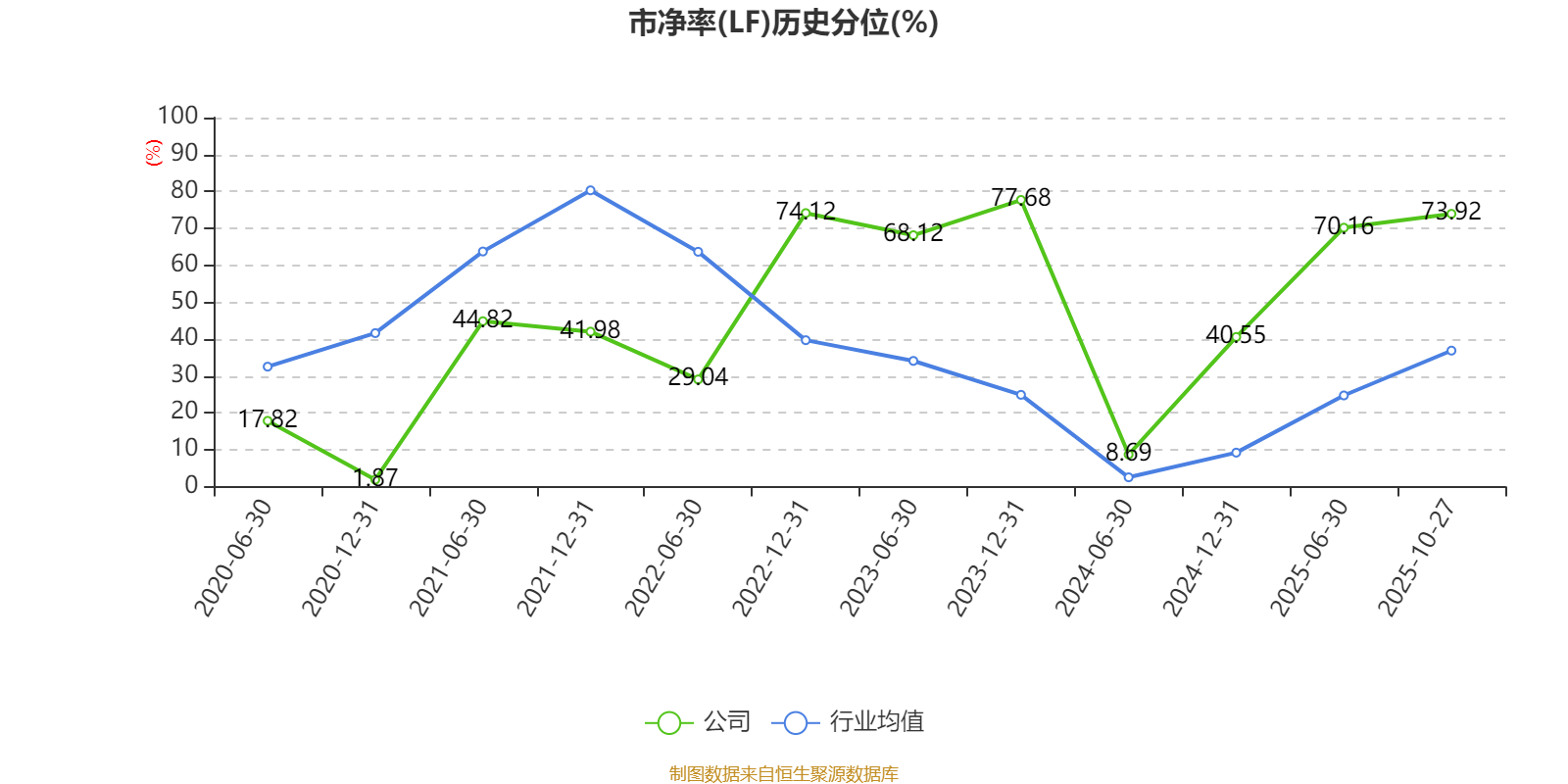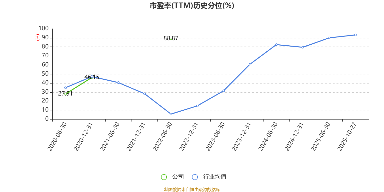 市盈率、市净率为负时,不显示当期分位数,会导致折线图中断。