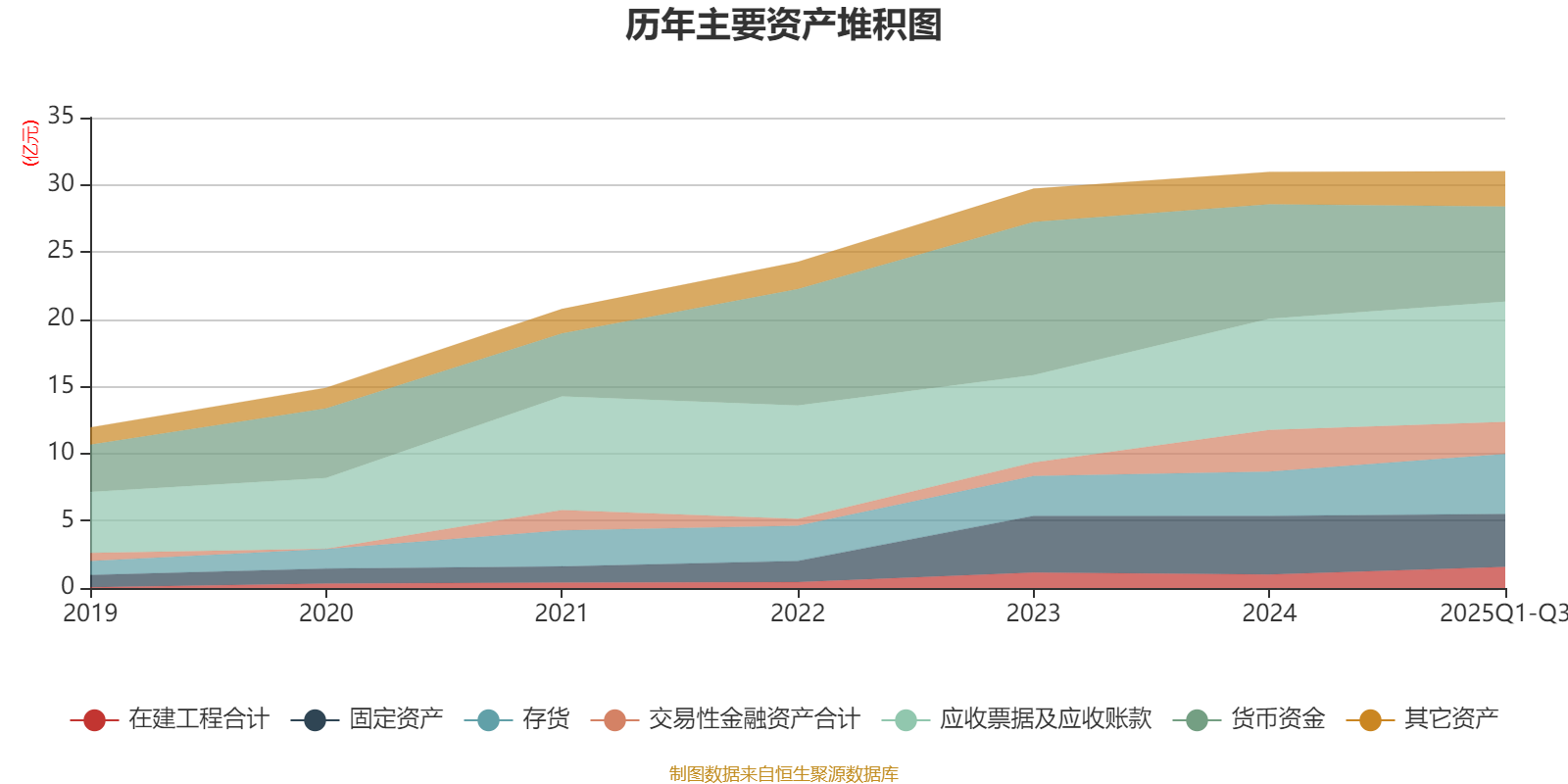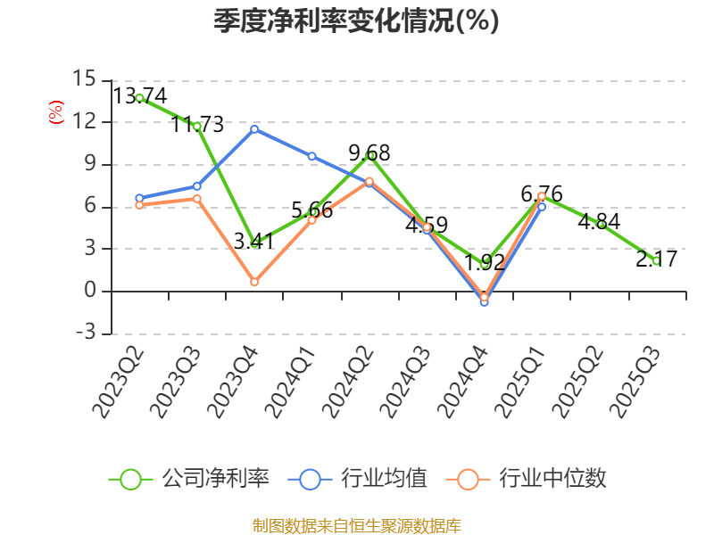 资产重大变化方面,截至2025年三季度末,公司货币资金较上年末减少17.02%,占公司总资产比重下降4.72个百分点;存货较上年末增加35.64%,占公司总资产比重上升3.77个百分点;交易性金融资产合计较上年末减少23.25%,占公司总资产比重下降2.34个百分点;应收票据及应收账款较上年末增加8.21%,占公司总资产比重上升2.15个百分点。