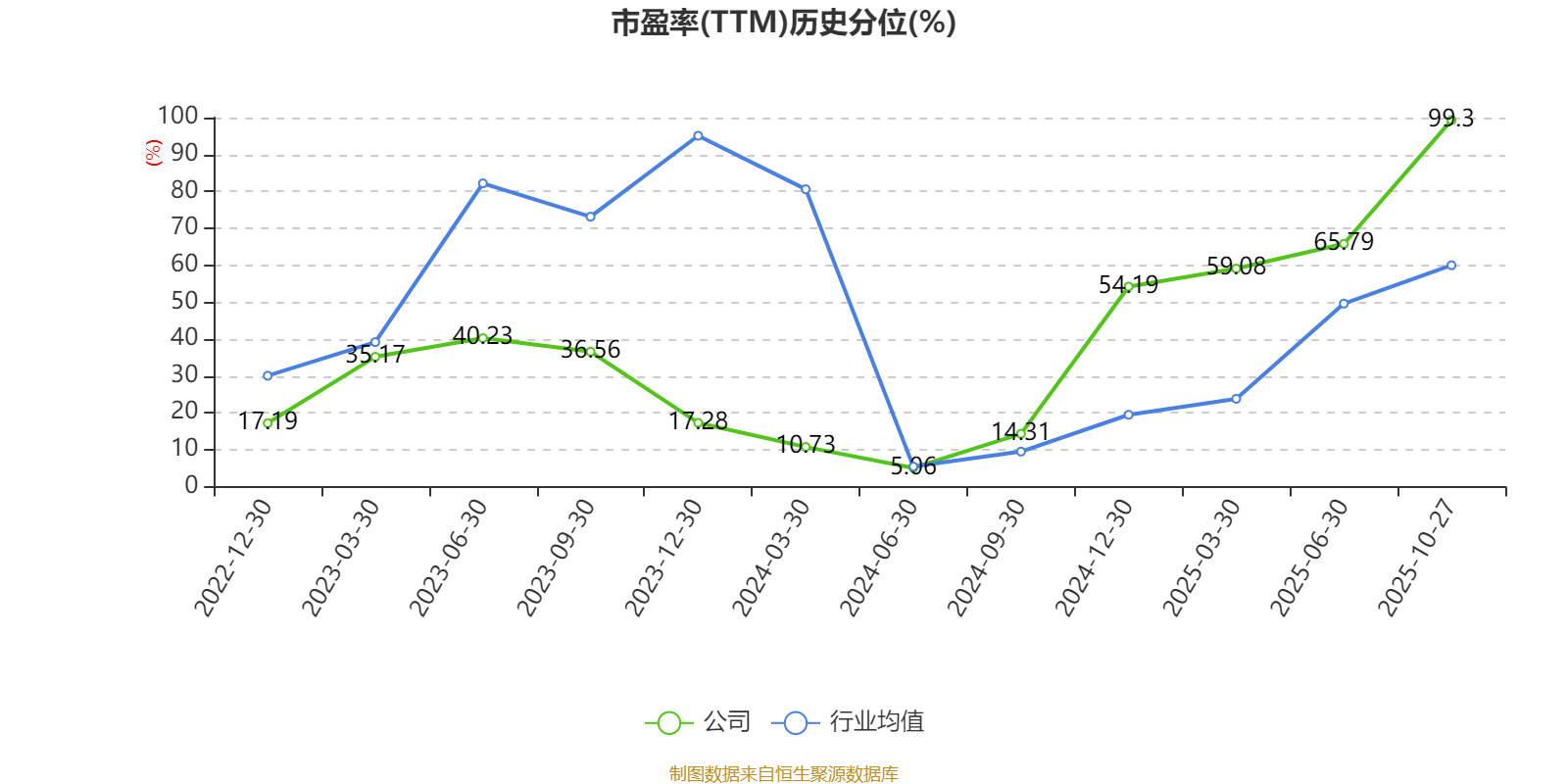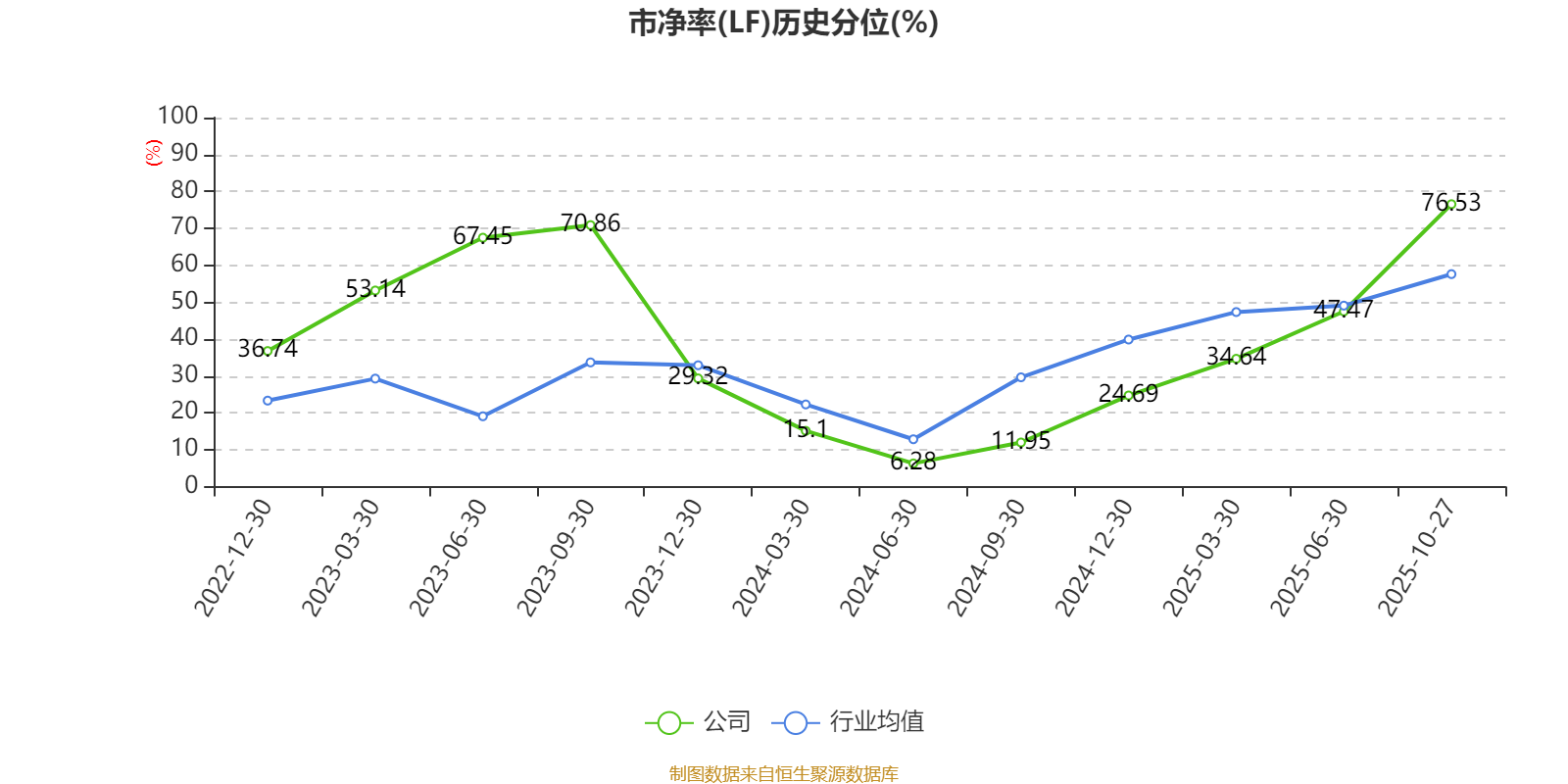 市盈率、市净率为负时,不显示当期分位数,会导致折线图中断。