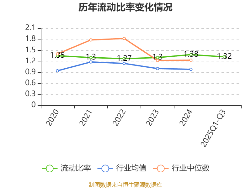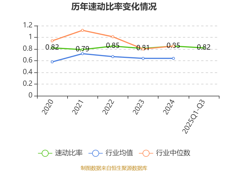 2025年前三季度,公司流动比率为1.32,速动比率为0.82。