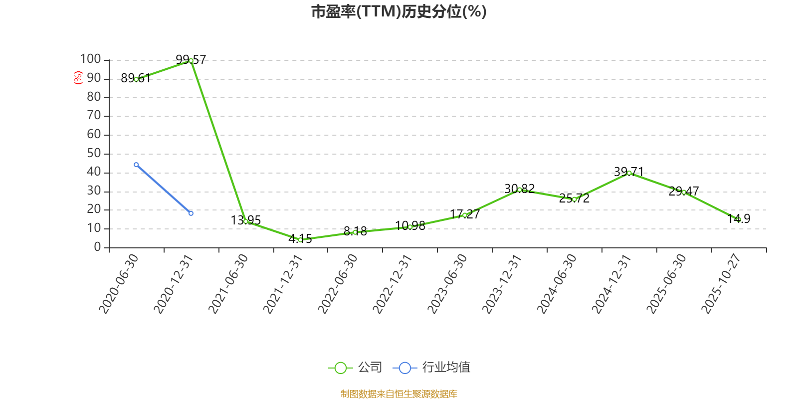 市盈率、市净率为负时,不显示当期分位数,会导致折线图中断。