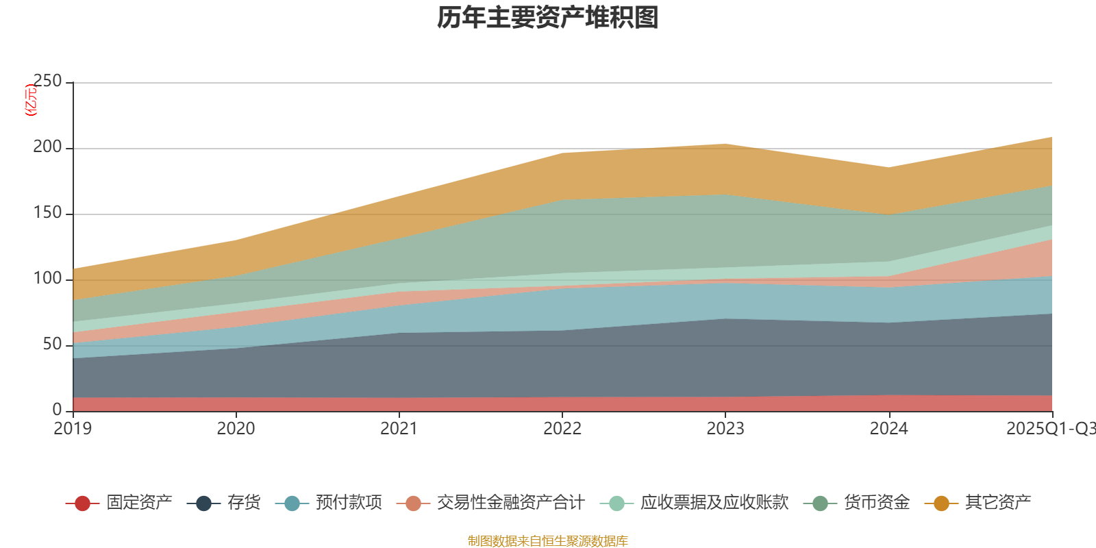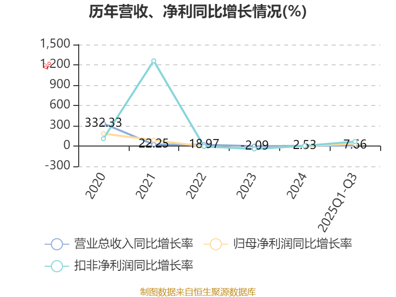 资产重大变化方面,截至2025年三季度末,公司交易性金融资产合计较上年末增加222.82%,占公司总资产比重上升8.73个百分点;货币资金较上年末减少15.09%,占公司总资产比重下降4.7个百分点;固定资产较上年末减少3%,占公司总资产比重下降0.9个百分点;应收票据及应收账款较上年末减少4.13%,占公司总资产比重下降0.89个百分点。