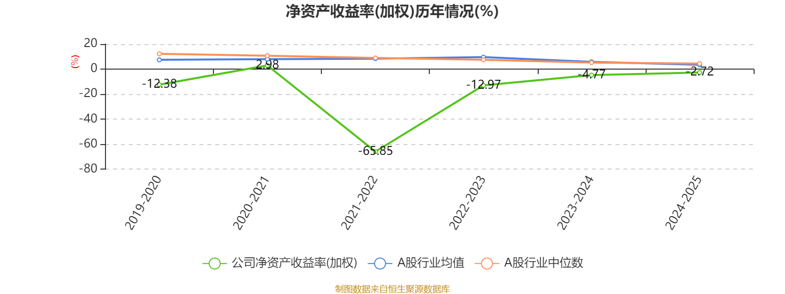 数据显示,报告期末公司平均净资产收益率为-2.72%,较上年同期上升2.05个百分点。