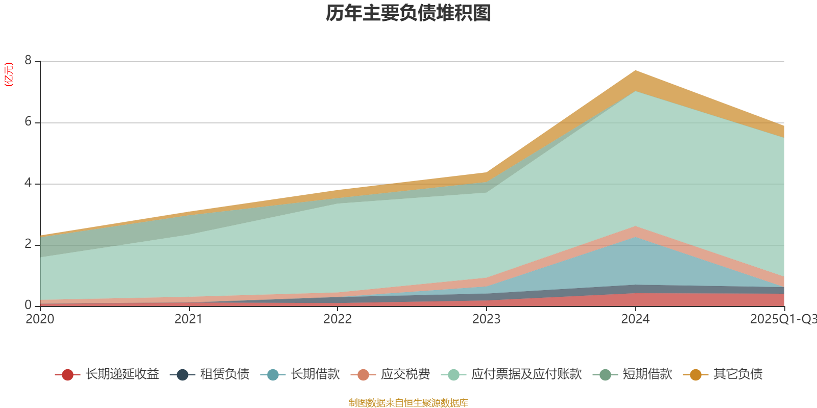 负债重大变化方面,截至2025年三季度末,公司长期借款较上年末减少100%,占公司总资产比重下降10.17个百分点;应付票据及应付账款较上年末增加2.93%,占公司总资产比重下降6.99个百分点;一年内到期的非流动负债较上年末减少69.09%,占公司总资产比重下降1.42个百分点;长期递延收益较上年末减少4.39%,占公司总资产比重下降0.81个百分点。