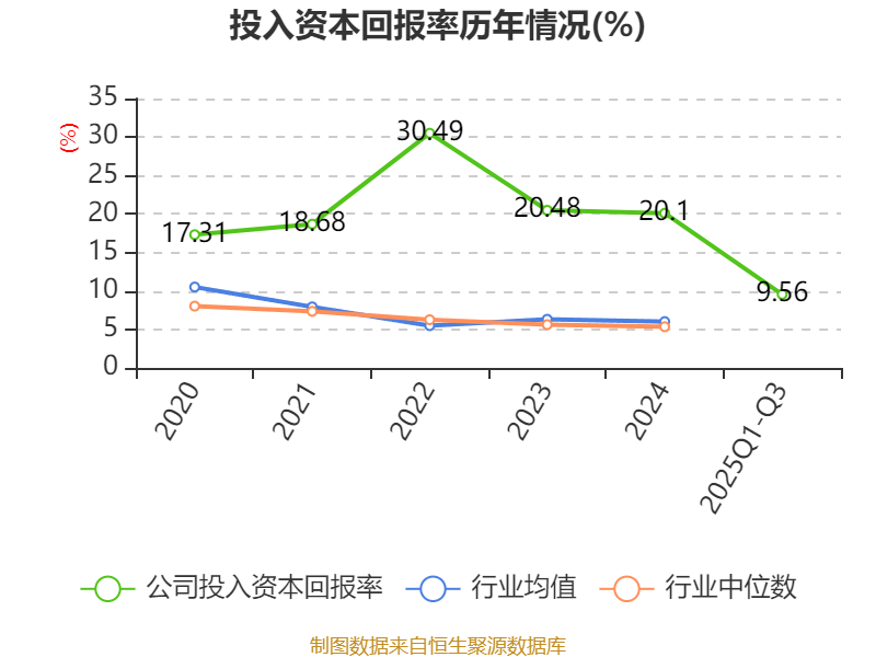 盈利能力方面, 2025年前三季度公司加权平均净资产收益率为5.63%。公司2025年前三季度投入资本回报率为9.56%,较上年同期下降26.59个百分点。