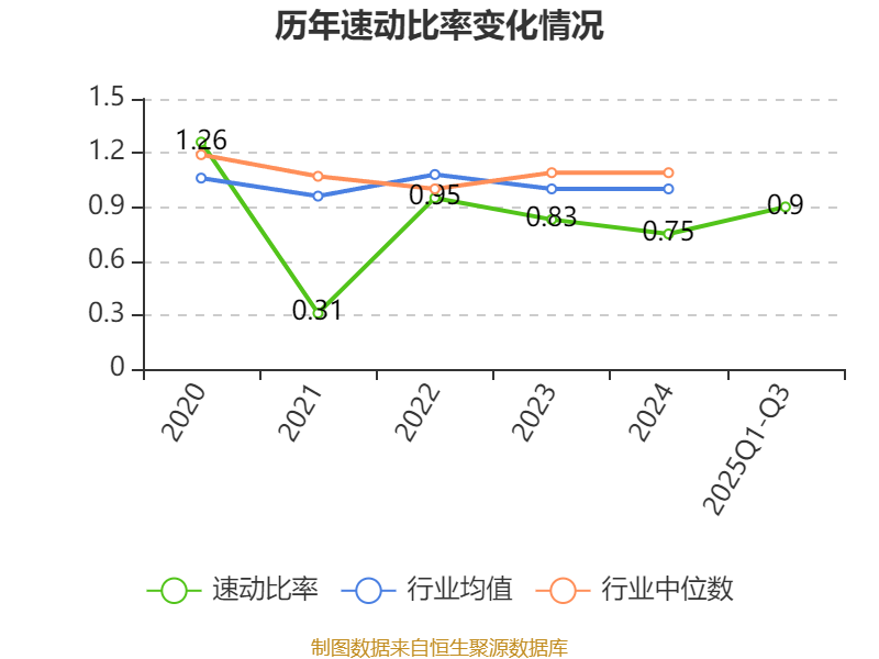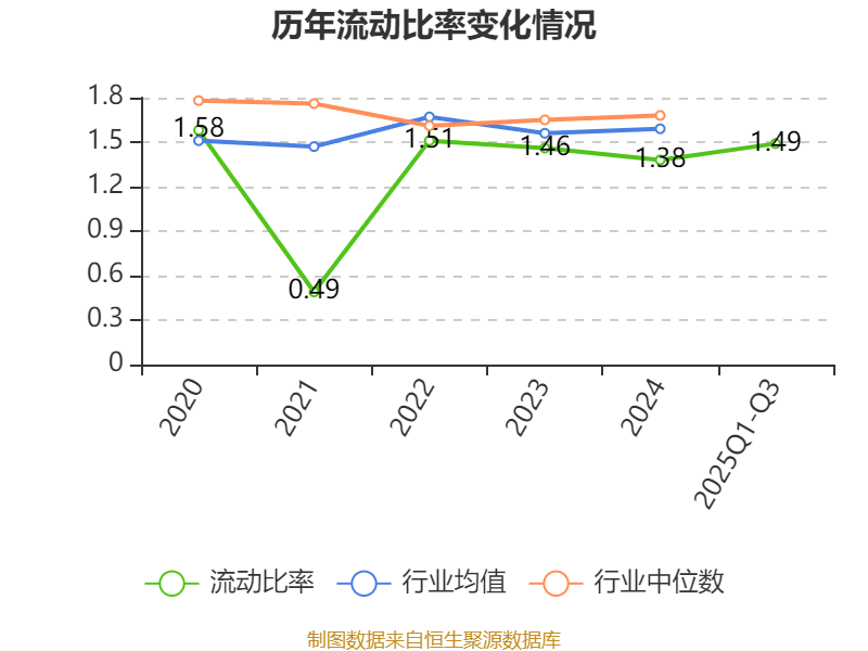 2025年前三季度,公司流动比率为1.49,速动比率为0.9。