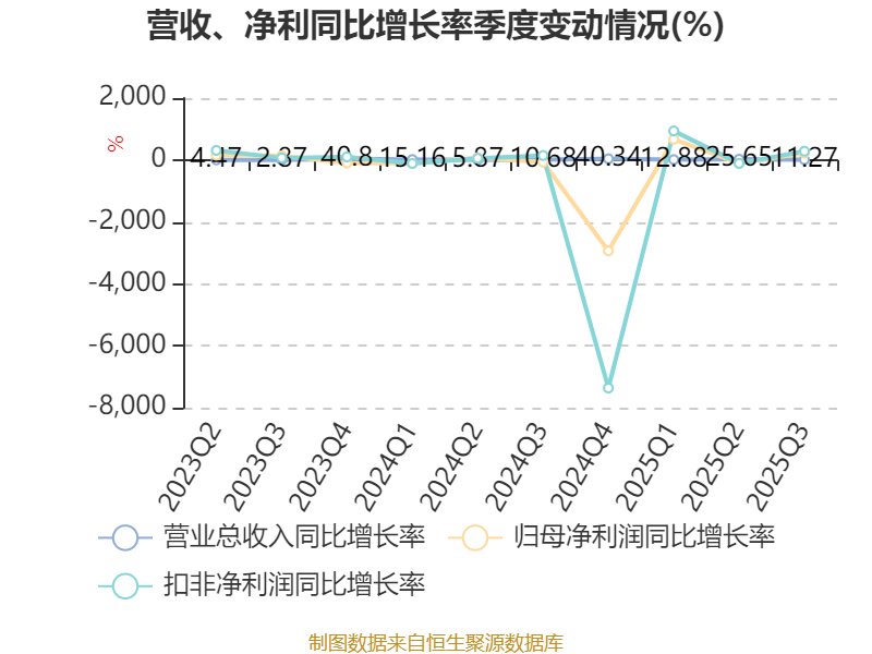 资产重大变化方面,截至2025年三季度末,公司交易性金融资产合计较上年末增加295.08%,占公司总资产比重上升5.33个百分点;其他非流动金融资产较上年末减少3.24%,占公司总资产比重下降2.75个百分点;货币资金较上年末减少7.72%,占公司总资产比重下降2.66个百分点;存货较上年末增加2.79%,占公司总资产比重下降2.06个百分点。
