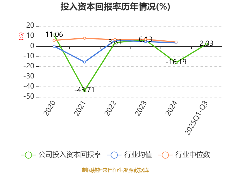 盈利能力方面, 2025年前三季度公司加权平均净资产收益率为2.68%,同比下降0.29个百分点。公司2025年前三季度投入资本回报率为2.03%,较上年同期下降0.19个百分点。