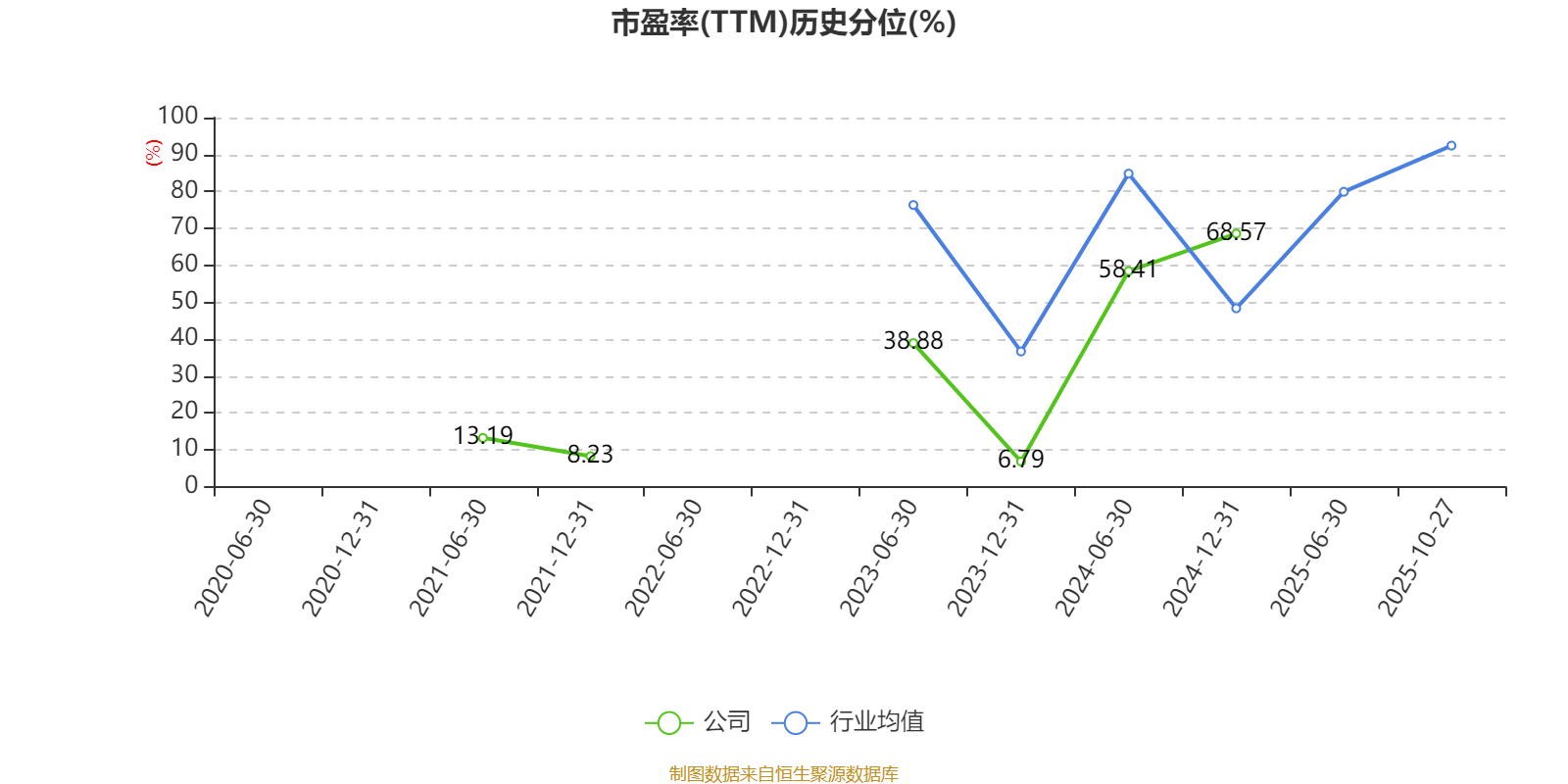 市盈率、市净率为负时,不显示当期分位数,会导致折线图中断。