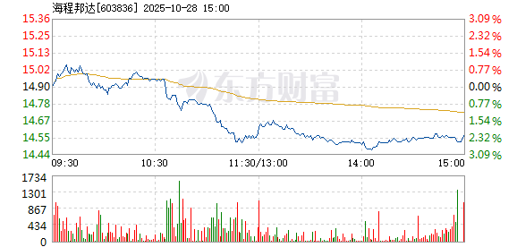以下是海程邦达在北京时间10月28日09:30分盘口异动快照:10月28日,
