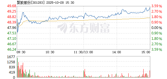 以下是聚胶股份在北京时间10月28日09:30分盘口异动快照:10月28日,