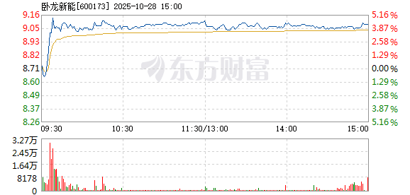卧龙新能盘中快速反弹,5分钟内涨幅超过2%,截至9点35分,报8.87元,成交3341.67万元,换手率0.55%。