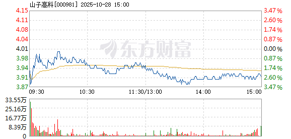 山子高科盘中快速反弹,5分钟内涨幅超过2%,截至9点35分,报3.96元,成交4.03亿元,换手率1.08%。