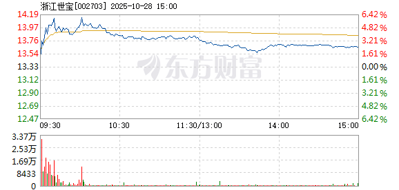 浙江世宝10月28日盘中涨幅达5%