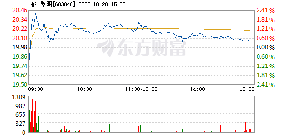 浙江黎明盘中快速上涨,5分钟内涨幅超过2%,截至9点36分,报20.43元,成交1105.83万元,换手率0.37%。