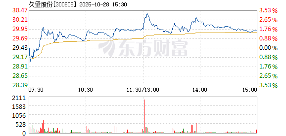 以下是久量股份在北京时间10月28日09:43分盘口异动快照:10月28日,