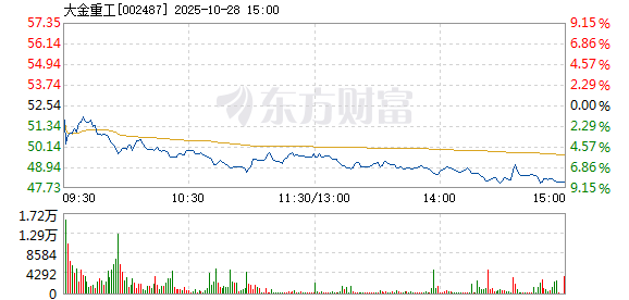 大金重工10月28日盘中跌幅达5%