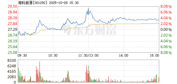 以下是海科新源在北京时间10月28日10:02分盘口异动快照:10月28日,
