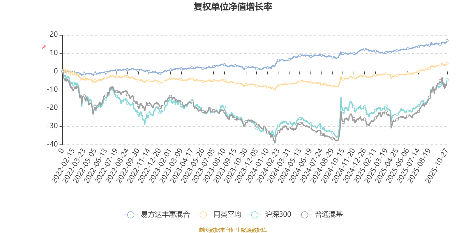截至10月27日,易方达丰惠混合近三个月复权单位净值增长率为2.30%,位于同类可比基金339/629;近半年复权单位净值增长率为4.95%,位于同类可比基金345/629;近一年复权单位净值增长率为6.48%,位于同类可比基金365/623;近三年复权单位净值增长率为16.47%,位于同类可比基金132/557。
