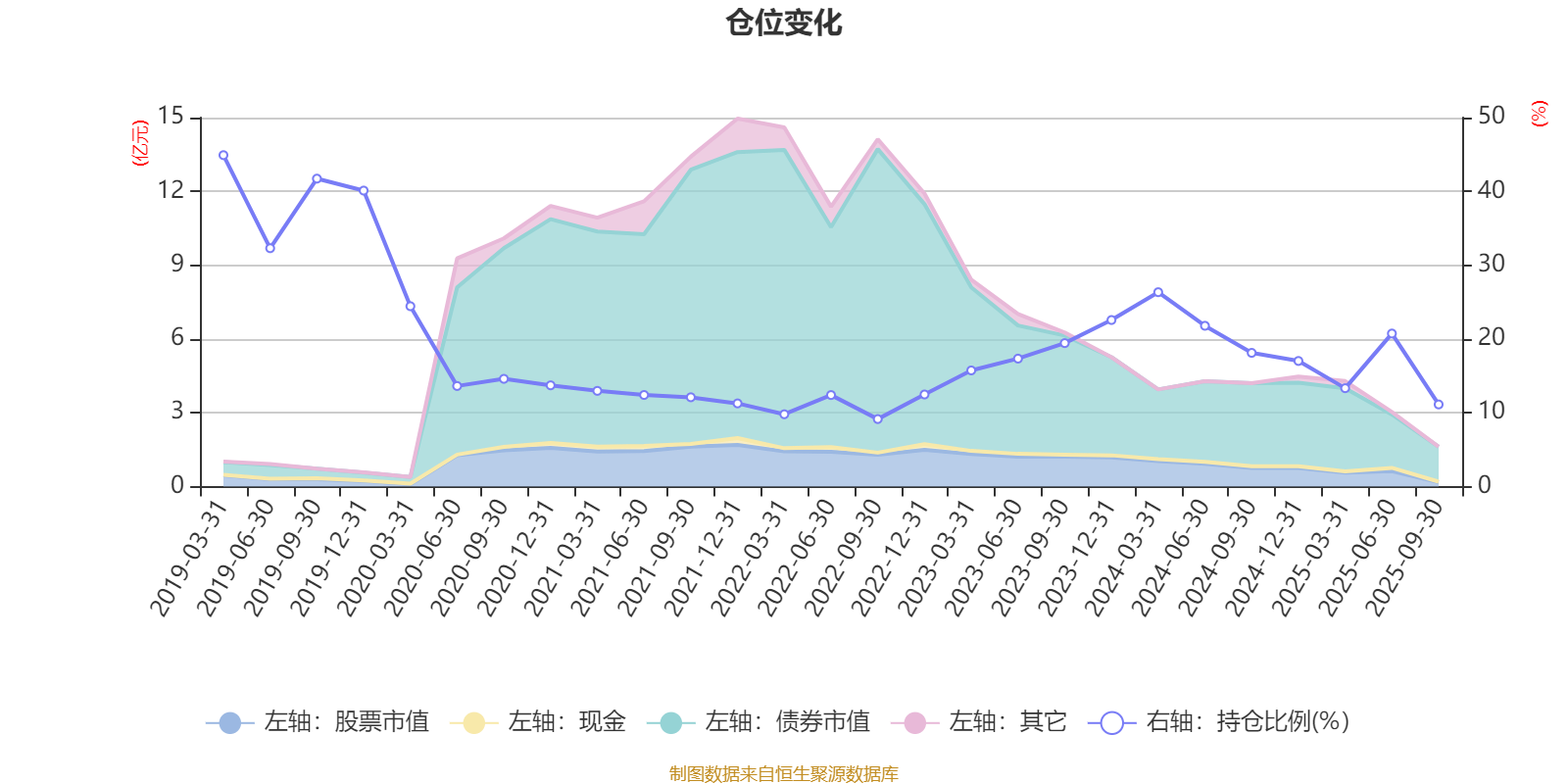 据定期报告数据统计,近三年平均股票仓位为18%,同类平均为19.02%。2019年一季度末基金达到44.91%的最高仓位,2022年三季度末最低,为9.15%。