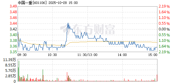中国一重盘中快速反弹,5分钟内涨幅超过2%,截至10点55分,报3.43元,成交4.07亿元,换手率1.76%。