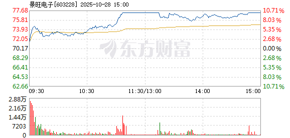 以下是景旺电子在北京时间10月28日11:06分盘口异动快照:10月28日11点6分,