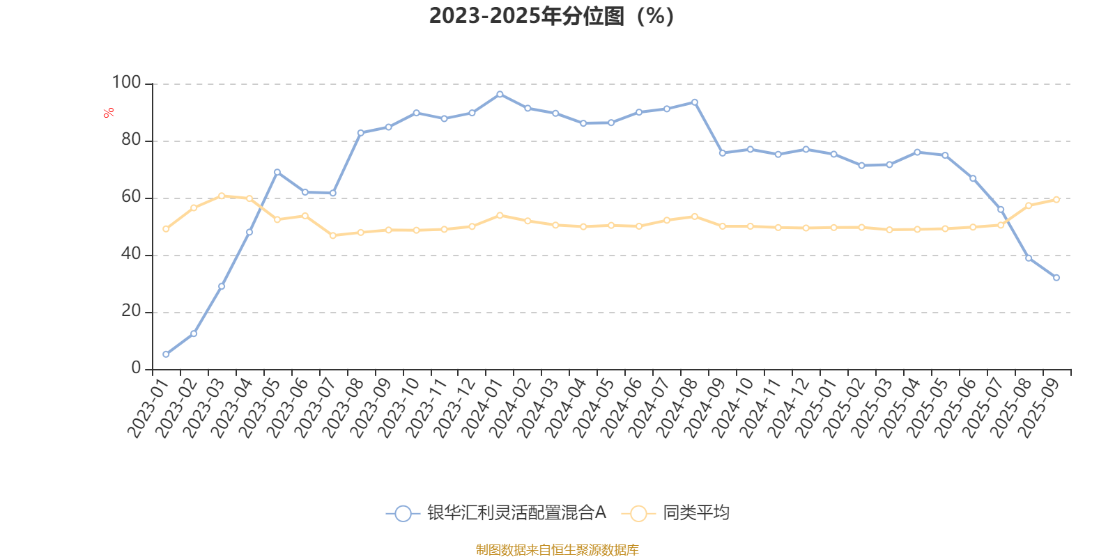 通过所选区间该基金净值增长率分位图,可以观察该基金与同类基金业绩比较情况。图为坐标原点到区间内某时点的净值增长率在同类基金中的分位数。