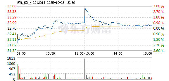 以下是诚达药业在北京时间10月28日13:00分盘口异动快照:10月28日,