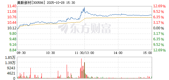 以下是美联新材在北京时间10月28日13:02分盘口异动快照:10月28日,