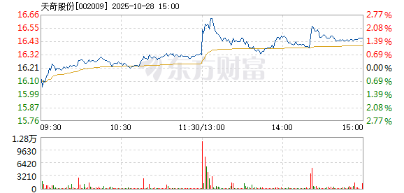 以下是天奇股份在北京时间10月28日13:03分盘口异动快照:10月28日,